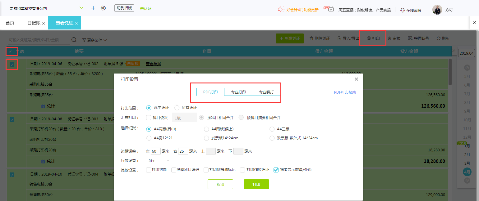 注:1、PDF打?。阂话銜?huì)把憑證內(nèi)容全部印在A4紙張上。