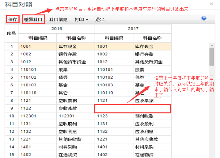 二、解決方法:所以,對于上面第一個問題,可以抓住第(3)點,如果應收賬款在2017年度增加了輔助核算, 那么只要將應收賬款的對照科目去掉就可以了,就可以結賬了,然后手工的在2017年錄入應收賬款的期初余額即可。第二問題的解決方法是,把2016年新增的明細科目在2017年賬套里再完全一樣的增加一下,再到2017年的科目對照表里手動的確定兩個年度的科目對照關系,最后到2016年取消12月份結賬,再重新結2016年12月份賬,這樣的話,就會把2016年全部的期末余額帶入到2017年的期初余額里了。