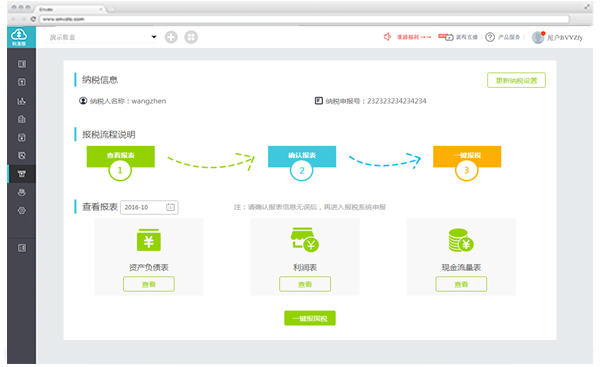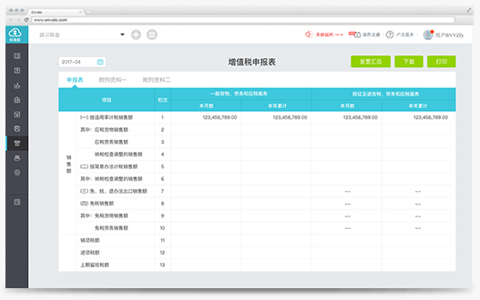 秒算增值稅納稅申報表和財務(wù)申報表,自動申報至稅務(wù)系統(tǒng),直達(dá)報稅系統(tǒng)。