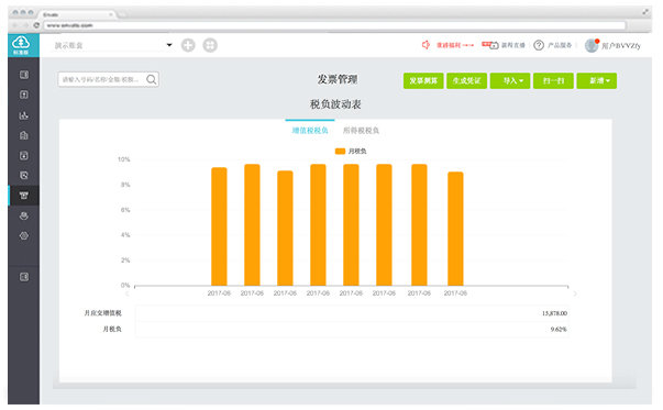 據(jù)發(fā)票數(shù)據(jù)測算企業(yè)增值稅稅負(fù),節(jié)稅籌劃盡在掌握,幫企業(yè)把控財稅風(fēng)險。